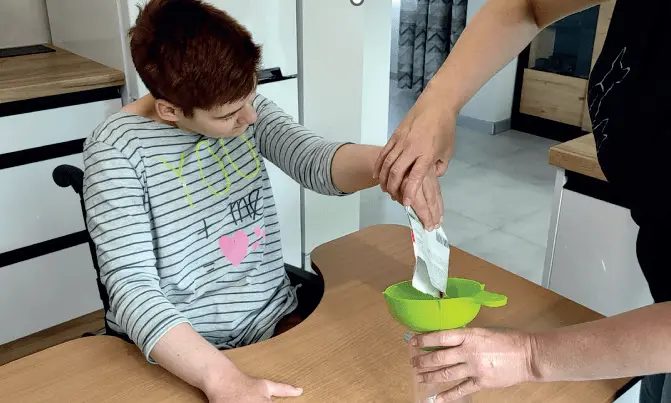 Mama: Tworząc instrukcję, koncentrujemy się nie tylko na potrzebach Natalii, ale również na wsparciu mnie jako najważniejszego partnera. Ważne, by obie strony czuły się pewnie i bezpiecznie – instrukcje są szczegółowe, ponieważ Natalia ze względu na słaby wzrok najlepiej przyswaja informacje słuchowe. Każdy etap pracy jest więc dokładnie opisany i uzupełniony zdjęciem lub krótkim filmem pokazującym sposób działania i warunek udanej współpracy.