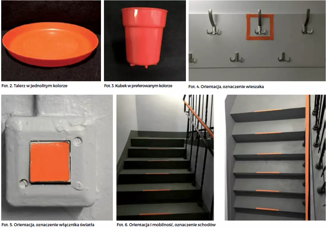 Używanie preferowanego koloru może być jednym ze sposobów do przyciągnięcia i utrzymania uwagi wzrokowej na konkretnym przedmiocie lub symbolu. Przykładowo dla dziecka, które preferuje kolor czerwony, pomocne będzie używanie czerwonej łyżki, czerwonej szczoteczki do zębów czy czerwonego kubeczka. Możemy również wykorzystać kolor, aby ułatwić dziecku mobilność i odnalezienie się w przestrzeni przez zaznaczenie kolorem np. framugi drzwi lub wieszaka na kurtkę. Warto używać preferowanego koloru nawet jeśli po jakimś czasie uda nam się poszerzyć gamę kolorów i dziecko nie będzie już tak wrażliwe tylko na ten kolor. U dzieci mających trudności z czytaniem i pisaniem preferowany kolor może służyć np. do podkreślania i zaznaczania różnic między dwoma podobnymi literami (tj. d i b).