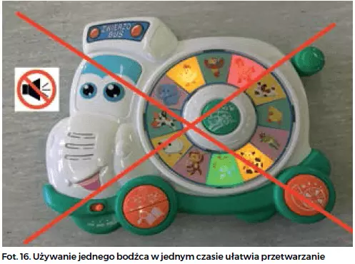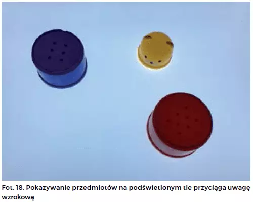 Dzieciom, które dopiero uczą się używać wzroku, dużą trudność może sprawiać utrzymywanie uwagi wzrokowej, gdy są dotykane, słyszą czyjś głos, a także gdy w otoczeniu jest intensywny bodziec węchowy. Ważne zatem jest, aby w momencie, gdy dziecko celowo spojrzy i będzie zaangażowane w patrzenie na dany przedmiot, zaczekać z pochwałami (słownymi czy poprzez dotyk) do momentu, aż samo zakończy czynność wzrokową.