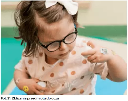 Zakres 7+–8: zaczyna oglądać przedmioty Zakres 9–10: wykorzystuje wzrok w niemal prawidłowy sposób |