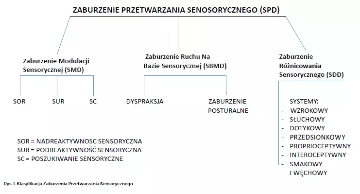 W nowej klasyfikacji pojawiła się więc nowa nazwa – Zaburzenie Przetwarzania Sensorycznego (SPD). Jest to ogólny termin, który obejmuje trzy wzorce zaburzeń: zaburzenie modulacji, zaburzenie różnicowania, zaburzenie motoryczne na bazie sensorycznej oraz kilka podtypów (nadreaktywność sensoryczna, podreaktywność sensoryczna, poszukiwanie sensoryczne, zaburzenie posturalne i dyspraksja).