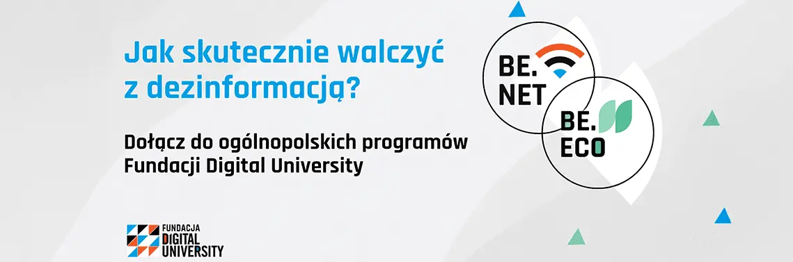 Gotowe zasoby oszczędzają czas. Informacje zawarte w tym artykule powstały na bazie jednego z webinarów prowadzonego w ramach bezpłatnych programów dla szkół prowadzonych przez Fundację Digital University. Program Be.Net, bo o nim między innymi mowa, jest zbudowany z 6 modułów, takich jak: „Cyberbezpieczeństwo, dezinformacja i netykieta”, „AI w edukacji” oraz „Narzędziownik technologiczny”.